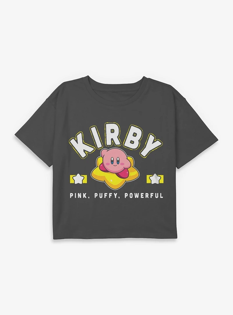 Nintendo Kirby Star Pink Puffy Powerful Youth Girls Boxy Crop T-Shirt