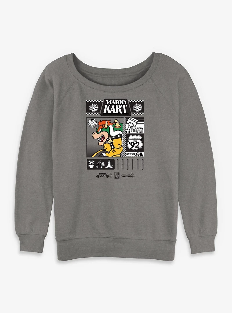 Nintendo Mario Kart Bowser Oil Racing Womens Slouchy Sweatshirt