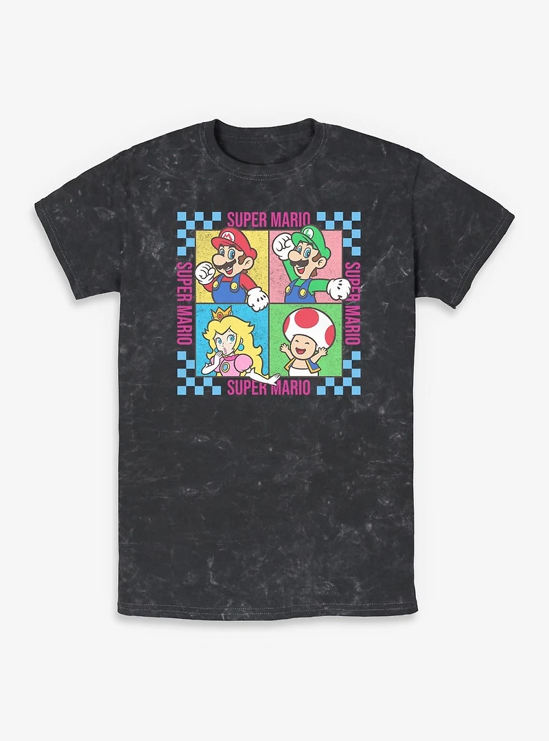 Nintendo Super Mario Checkered Squares Characters Mineral Wash T-Shirt
