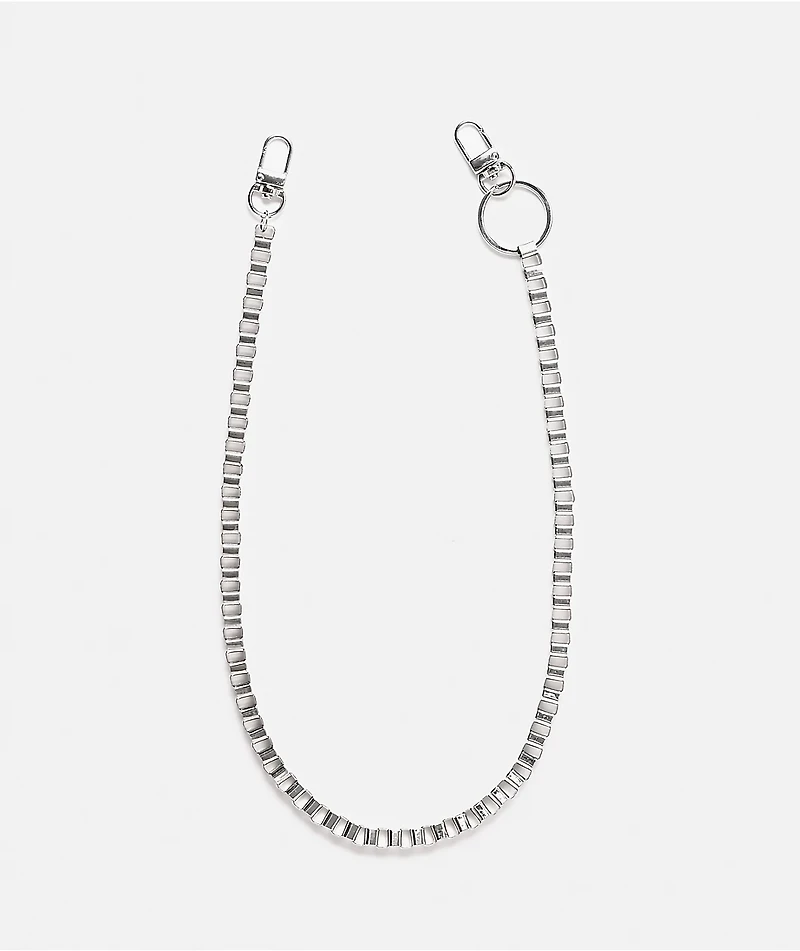 Add a flashy alternative aesthetic to your outfit with the silver Box pocket chain from Ninth Hall, featuring a Box link pattern and reliable clasp closures on each end. Doubling as a security measure against pickpockets, the metallic chain can be ea