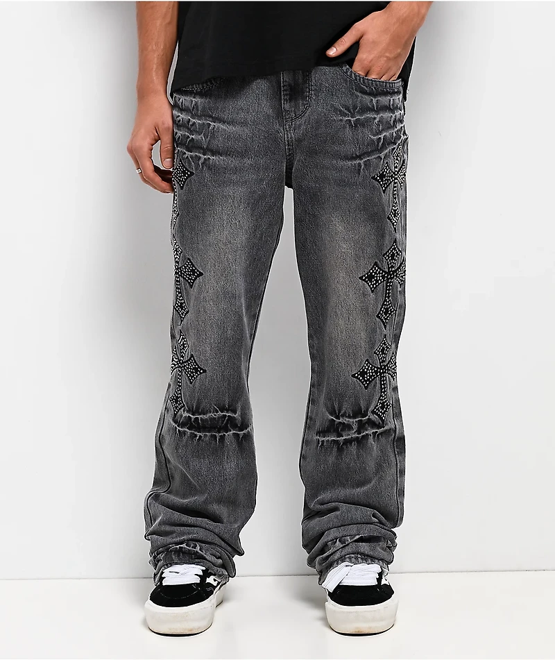 Ninth Hall Defender Crosses Grey Fade Flare Jeans