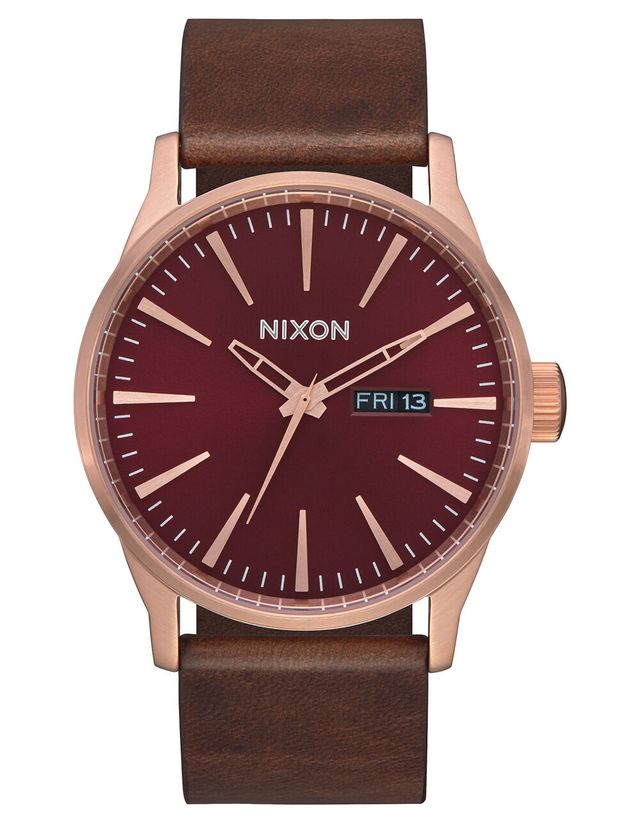 NIXON Sentry Leather Burgundy & Rose Gold Watch