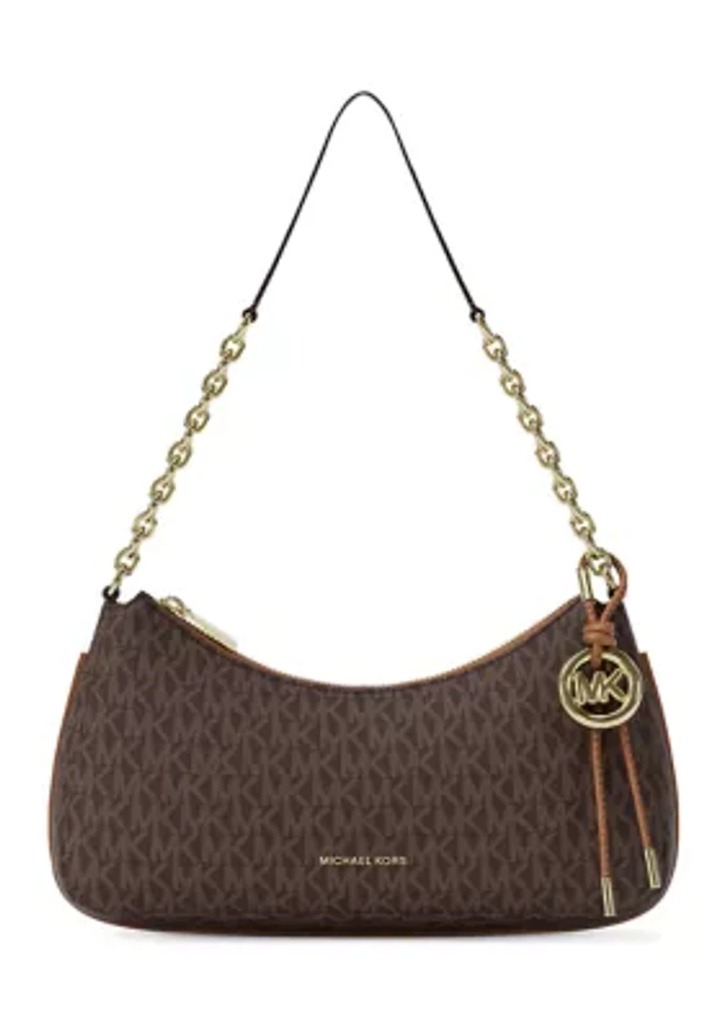 This MICHAEL Michael Kors accessory features a convenient back slip pocket to keep essentials organized. The comfortable shoulder strap allows for hands-free convenience, perfect for everyday use or a night out. 10.5" drop shoulder strap Interior: back slip pocket Imported Product Specifications 11.25" W x 4.5" H x 2.5" D Material & Care PVC Wipe clean