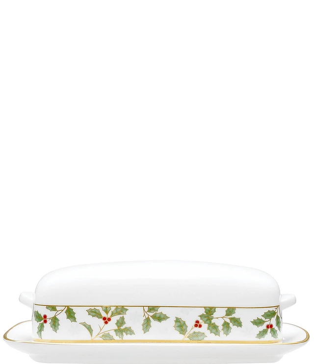 Noritake Holly & Berry Gold Collection Covered Butter Dish