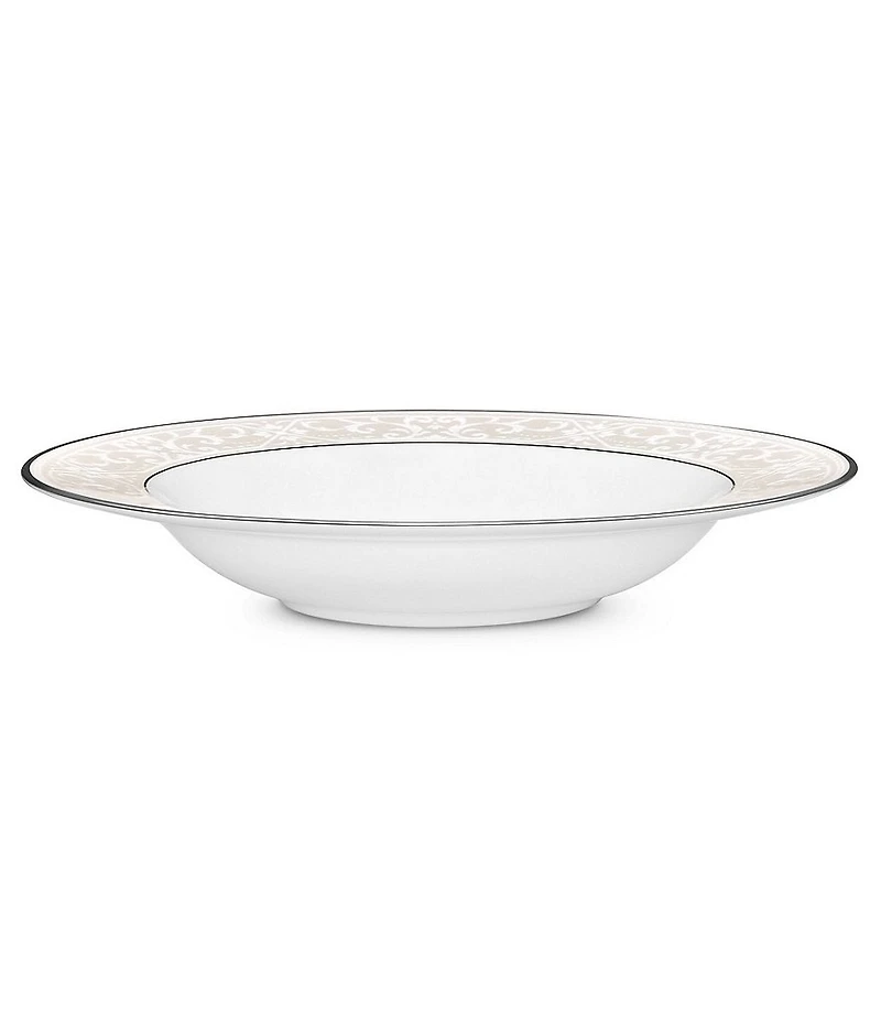 Make every occasion special with this beautifully-crafted bone china soup bowl from the Montvale collection. Bordered by an elegant scroll design underscored with thin platinum trim, it superbly illustrates the beauty and quality of Noritake fine china. Approx. 8.37". Dishwasher safe. Please allow 2-3 weeks for delivery.