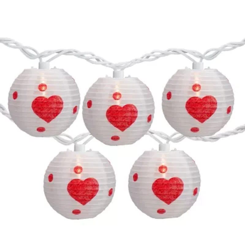 Northlight 10-Count 8ft White And Red Heart Paper Lantern Valentine'S Day String Lights