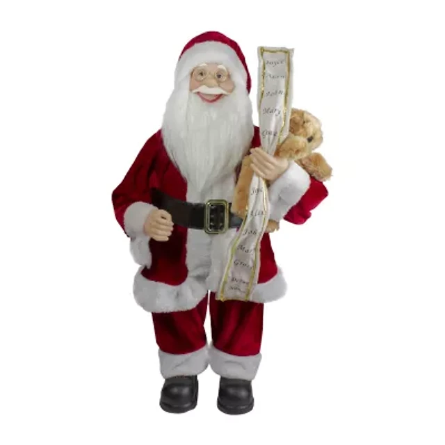 Northlight 24" Standing Santa With Teddy Bear And List Christmas Figurine