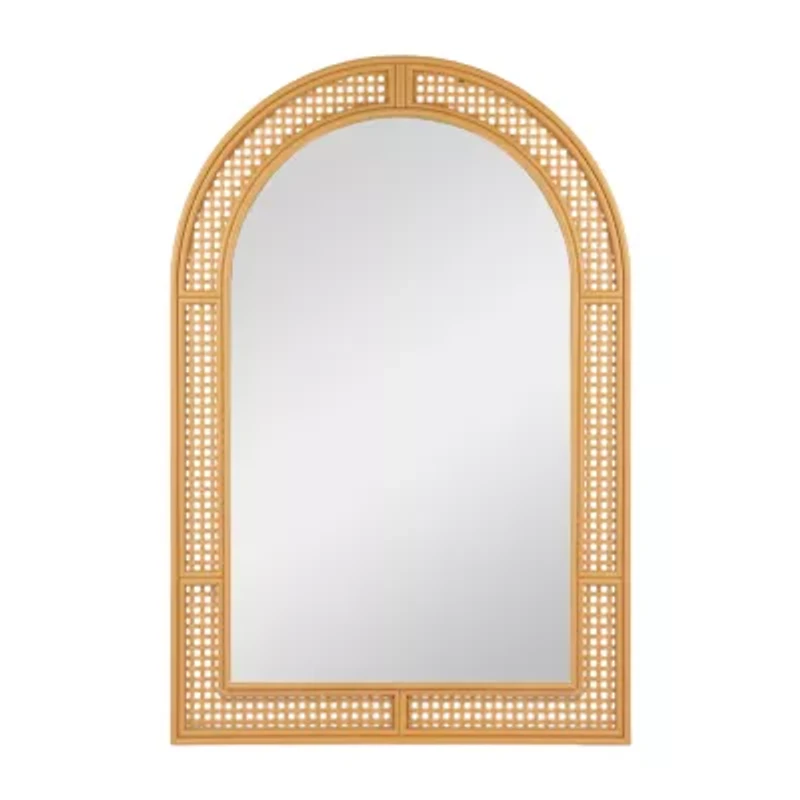 Add style and character to your space with this beautiful wall mirror. The mirror lets incoming light shine brightly opening your room space. The lovely arch design will complement any room in your home or office adding a unique coastal vibe. Perfect for entryways bedrooms and hotel decor. Product features: arched lattice style wall mirror. Designed with a weaved border. Ready to hang as soon as it arrives. Recommended for indoor use only. Dimensions: 36"h x 24"w x 1.25"d. Material(s): plastic/glass