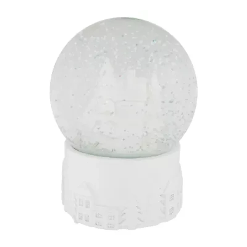 Decorate your home for the holidays with This snowy musical village water globe it features a church in a beautiful winter setting with trees and snow the base is decorated with a classic winter snow village with houses and trees a perfect Christmas gift for family or friends product features: musical church snow globe classic winter design wind it up to hear it play "white Christmas" recommended for indoor use only dimensions: 5.5" high x 4" diameter material(s): resin/glass/water