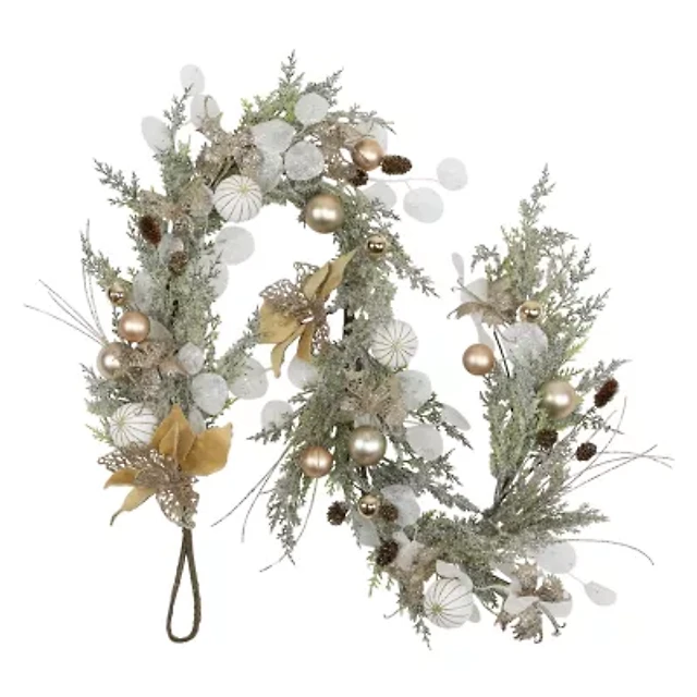 Northlight 6ft Glittered Poinsettia And Ornaments Artificial Christmas Indoor Garland