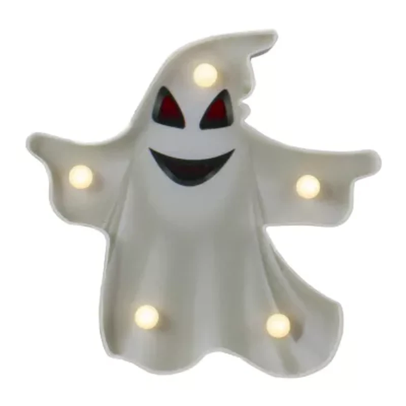 Add some light to your Halloween decor with this illuminated marquee sign. It features an eerie ghost and will be sure to send a chill down your spine. Great for parties or use as a nightlight. Product features: illuminated by 5 led lights. Color: warm white bulbs. One-sided design. Led lights use up to 90% less energy. Bulbs stay cool to the touch. Requires (2) aa size batteries; not included. Convenient on/off switch on the back. Comes ready-to-hang with keyhole hooks on the back. Recommended for indoor decorative use only. Dimensions: 7"h x 7"w x 1"d. Material(s): plastic