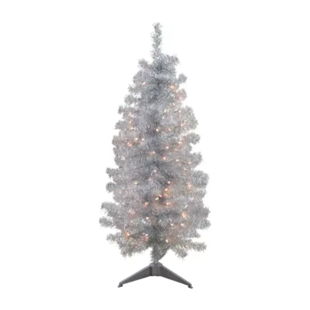 Northlight Slim Silver Artificial Tinsel Clear Lights 4 Foot Pre-Lit Christmas Tree