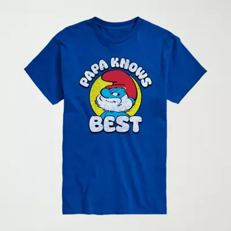 Novelty Mens Crew Neck Short Sleeve Regular Fit Smurfs Graphic T-Shirt
