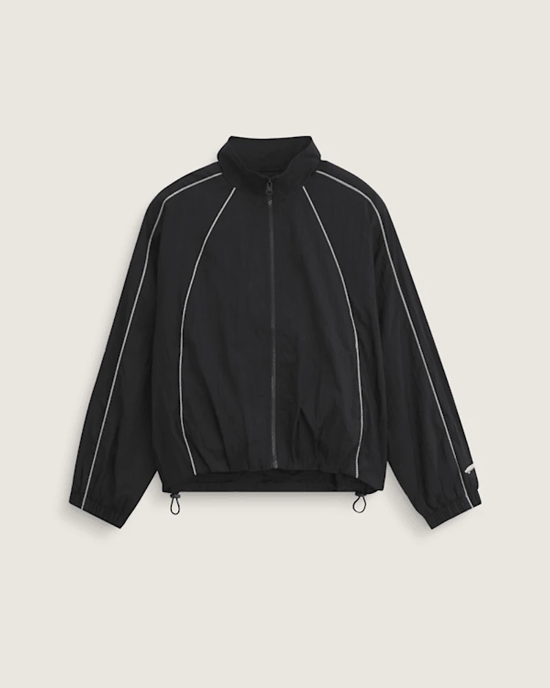 This track jacket brings laid-back vibes to your everyday wardrobe. The lightweight nylon construction and full-zip front make it easy to throw on and go, while contrast piping adds a sporty touch. With a relaxed fit and adjustable hem, it's perfect for running errands or meeting up with friends in comfort and style.