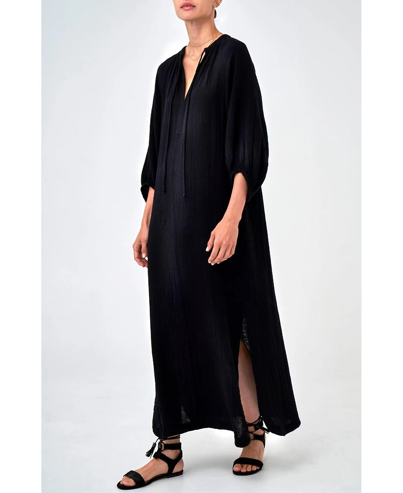 Ocean+Main Women's Avery Long Tie Neck Dress Gauze Caftan
