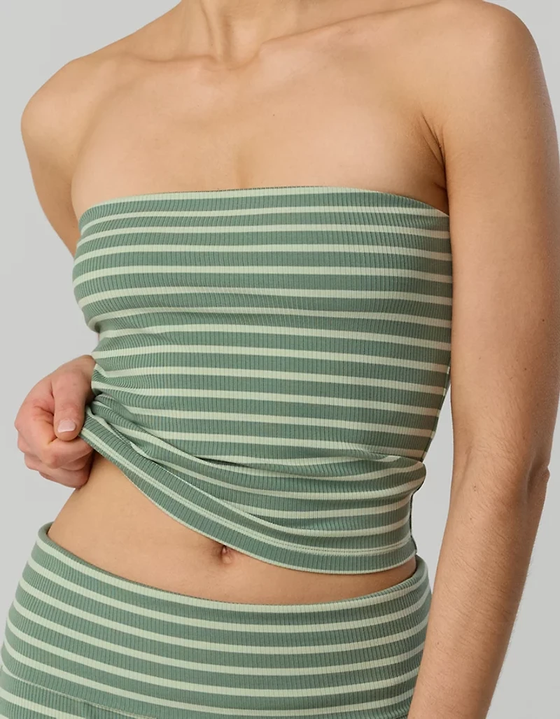 - THE LOOK: Silky smooth. Subtle rib knit. Strapless.