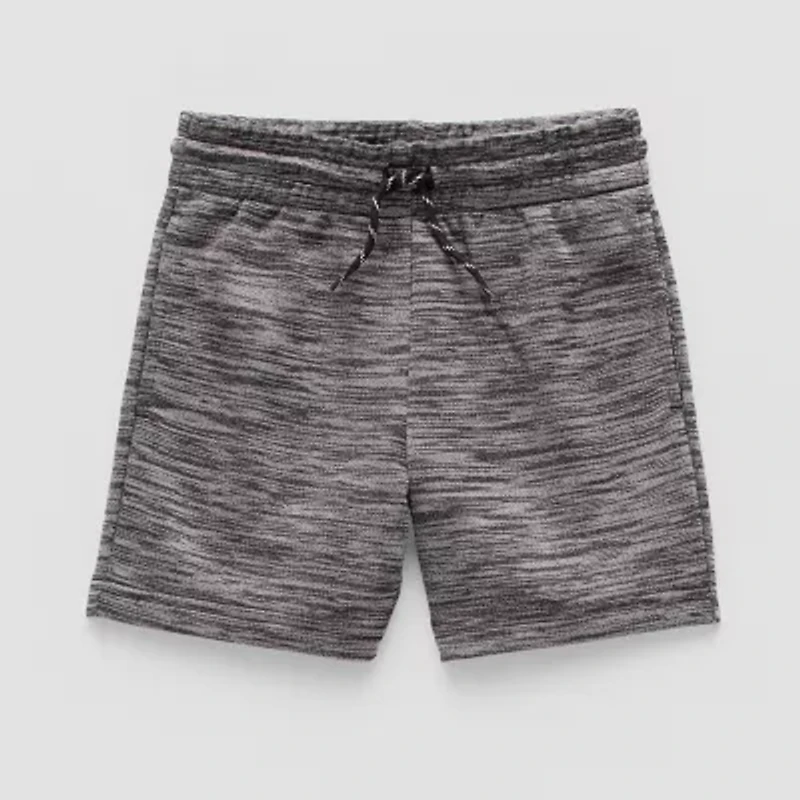 Every toddler or little boy's wardrobe needs a versatile pair of pull-on shorts to wear to school, playdates, or for lounging and these from Okie Dokie perfectly fit the bill. They're made from a moisture-wicking French terry in a heathered gray color and feature a regular-fit, an elastic-drawstring waistband, and side slip pockets.