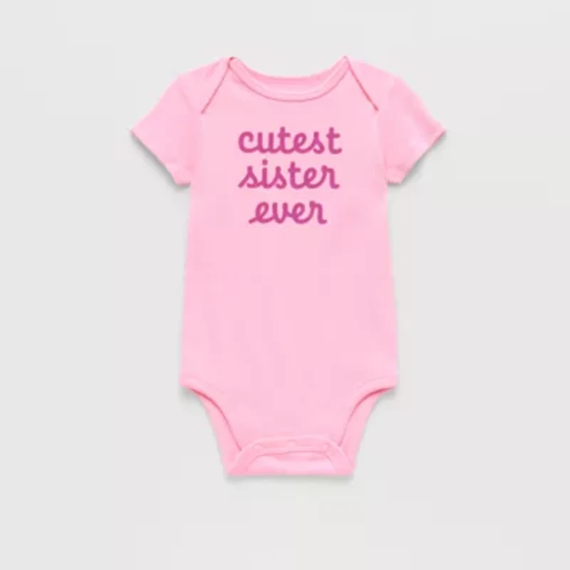 A perfect everyday essential, this Okie Dokie baby girls’ bodysuit keeps little ones comfy with a soft ribbed design, round neckline, and short sleeves. With snap-bottom closure that allows quick diaper changes, this regular-fit piece layers easily under pants or skirts.