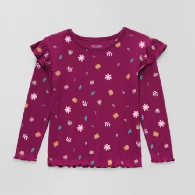 Okie Dokie Toddler & Little Girls Round Neck Long Sleeve Regular Fit Graphic T-Shirt