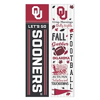 Add some fall time dcor to your Oklahoma Sooners collection with this 47" Double Sided Fall Leaner Fan Sign. The double-sided design of this sign will ensure that you can use it year-round, with one side featuring classic team colors and logos and the other side having a seasonal theme. This sign can be the finishing touch to your living room or fan cave, so your fall decorations can have some Oklahoma Sooners flair.