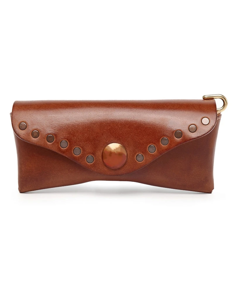 Compact and stylish, our rock eye sun-glass case has a decidedly vintage look and feel, and also keeps favorite eye-wear protected. Handcrafted using genuine leather with interior velvet lining and nickel-free embellishments.