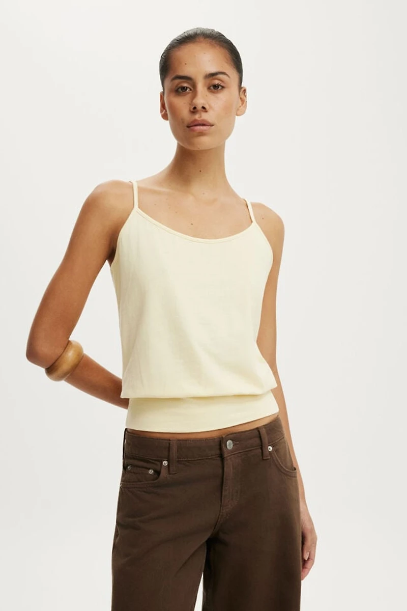 The one that always works. The Olivia Basque Cami is fitted with thin adjustable straps and a basque waist panel that sits just right. Soft vanilla glow colour, scoop neckline, and a straight hem. Easy to dress up, down, or somewhere in between with your favourite pants.