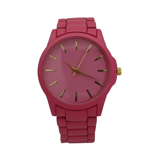 Olivia Pratt Hot Pink Solid Color Large Face Women Watch