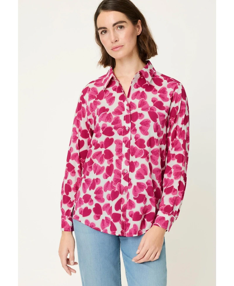 A classic shirt elevated by a powerful, mood-boosting all-over heart print, this style brings vibrant energy to both workdays and weekends.