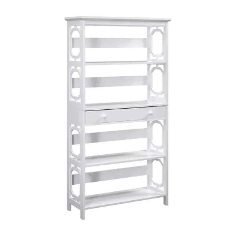 Whether you need additional space to showcase books or decorative items, the omega 5 tier bookcase with drawer by convenience concepts is your solution! This open-concept unit includes 5 spacious shelves giving plenty of space for books, displays, or collectibles. Also featuring a large drawer for hiding unsightly accessories. The clean lines and unique octagon cut outs are sure to make a statement in any area of your home. The omega 5 tier bookcase with drawer is engineered from MDF, particleboard, and finished with a smooth non-lead-based paint. Look for coordinating pieces from the omega collection by convenience concepts, each sold separately.