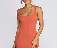 You're always on it when it comes to style, and this basic knit mini will make for such a cute 'fit. The dress features a sleeveless bodice, tank-like shoulder straps, a square neck and back, and a short, form hugging fit. The dress is composed of a soft knit that offers plenty of stretch.