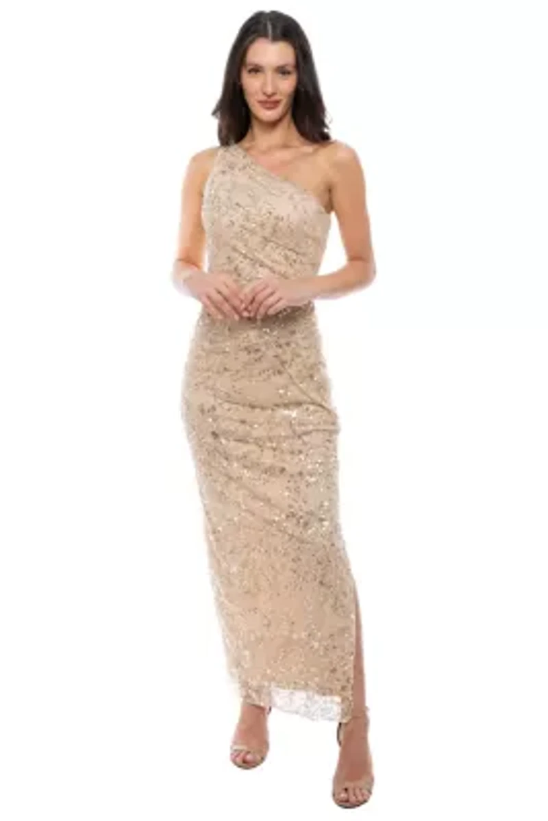 One Shoulder Beaded Mesh Gown in Franklin, TN