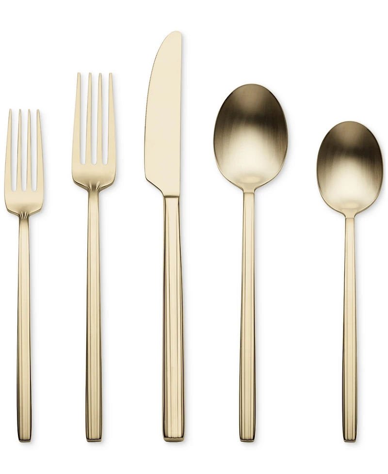 Strike a contemporary note at the dinner table with the architecture-inspired lines of Oneida's Dean 20-piece flatware set. Long and lean, each 18/10 stainless steel piece features a gold-tone finish and a narrow, fluted handle that's surprisingly substantial in hand.