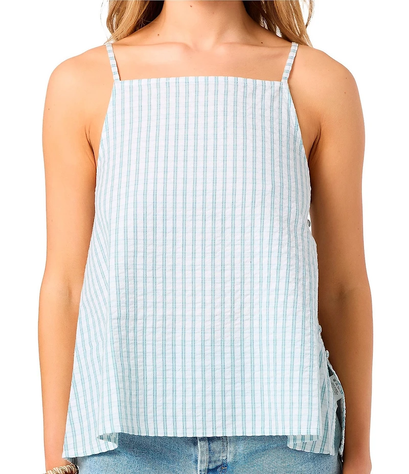 From O'Neill, this tank top features: Plaid design Square neckline Sleeveless Spaghetti straps Pullover styling Buttoned panel at the side seam with modesty placket Woven yarn-dyed cotton seersucker Machine wash/tumble dry Imported.