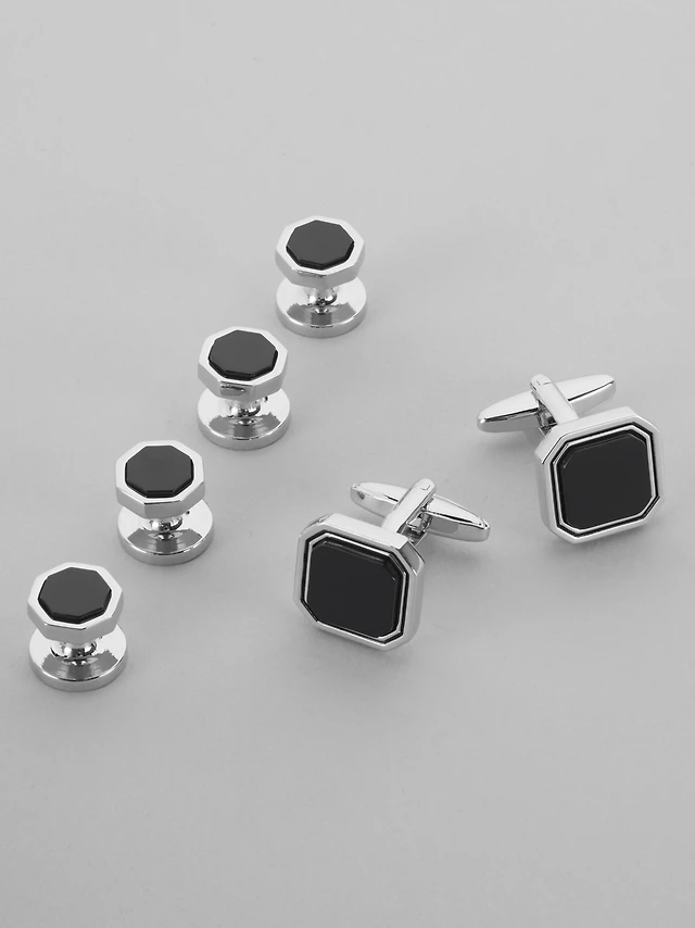 Jos. A. Bank Mother Of Pearl and Onyx Cufflink & Stud Set