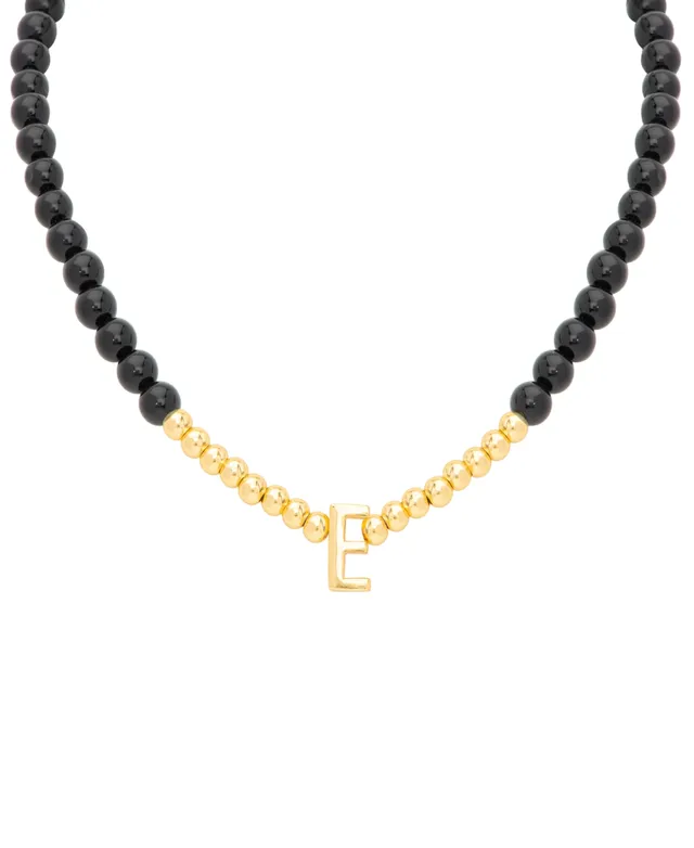 Onyx & Polished Gold Bead Initial 18" Pendant Necklace in 14k Gold-Plated Sterling Silver