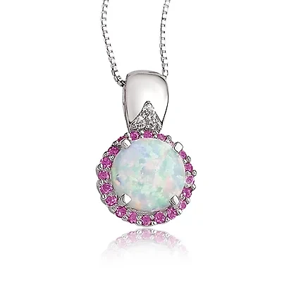 1.2 ct. t.w. Created Opal, Created Pink Sapphire & Diamond Accent Pendant Necklace in Sterling Silver
