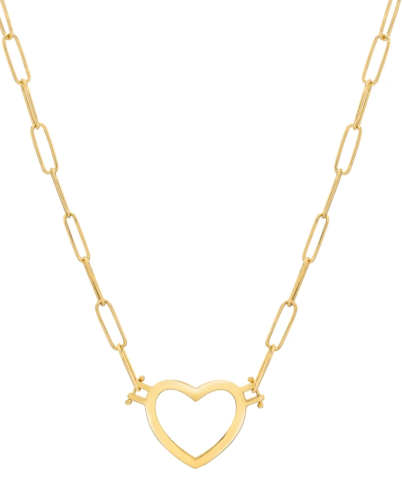 Love is always in style with this modern paperclip link open heart pendant necklace.