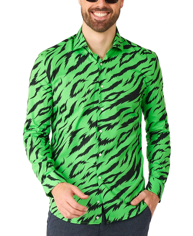 OppoSuits Men's Shirt - Long Sleeved Wild Animal Print Party Outfit Neon Green Retro 80's Clothing