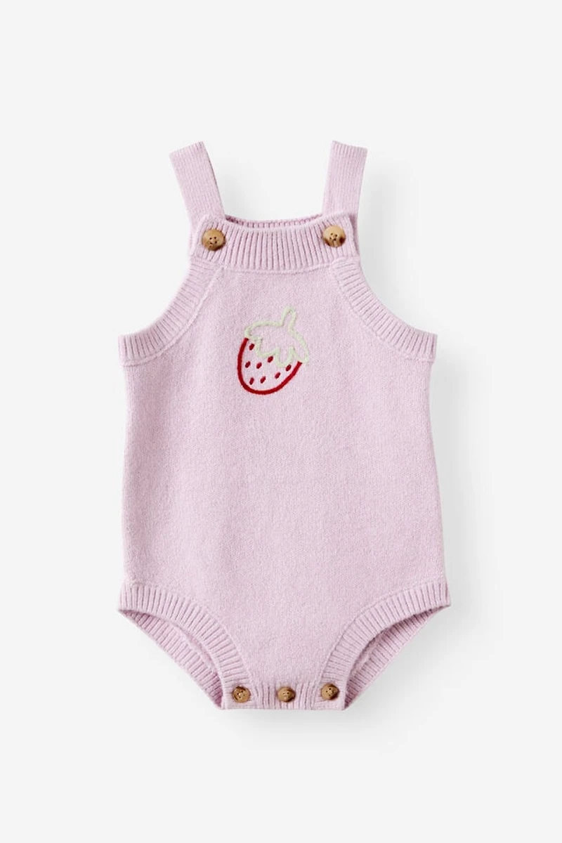 Zip, change, done. Meet the Organic Knit Bubbysuit, a fully fashioned knit bubbysuit made for daytime cuddles and middle-of-the-night feeds. The intricate knit pattern brings easy cotton comfort, while the adjustable button shoulder closure and button closure at the crotch make nappy changes quick and simple. A square neckline, sleeveless design, and thick straps keep things practical and sweet. Perfect for quick changes and long cuddles.