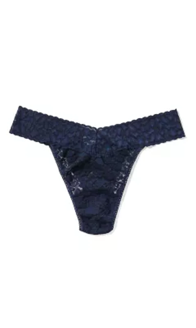 With a delicate lace construction, this thong by Hanky Panky® will enhance your intimates collection. Elastic waistband Low-rise fit Leopard pattern Imported Material & Care Lace Nylon, spandex Hand wash