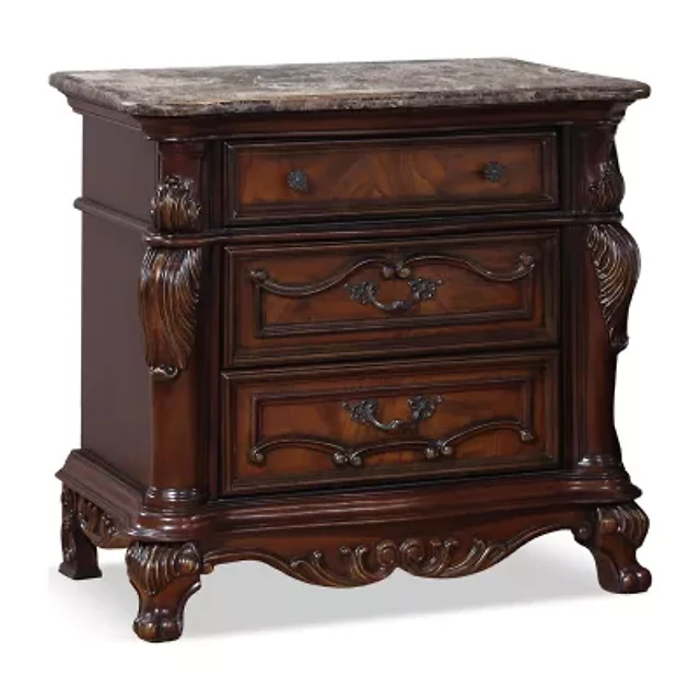 Yigii Rustic 3-Drawer Nightstand with Leaf Carvings
