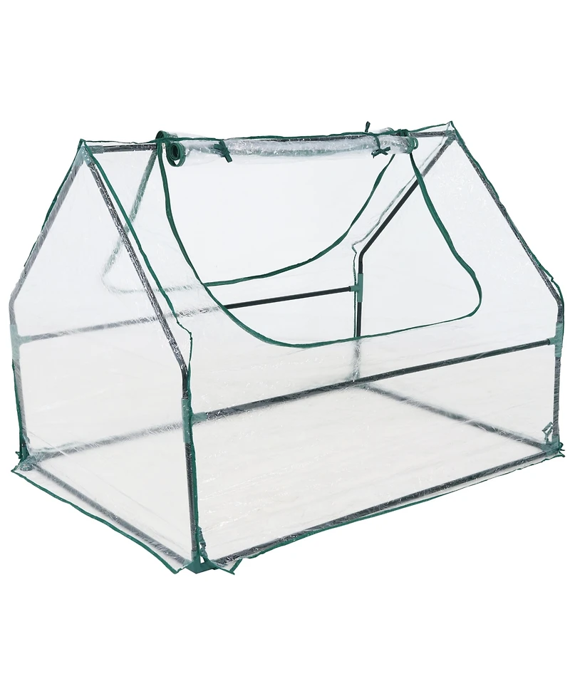 This mini outdoor greenhouse provides a practical solution for extending the growing season and protecting delicate plants. Designed with a durable iron tube frame and a reinforced Pvc cover, it offers strength and weather resistance while maintaining consistent humidity and warmth inside. Measuring 51"" wide by 36.25"" deep and 37.5"" high, it fits comfortably in small outdoor spaces like patios, decks, and gardens. Two doors with zippered openings allow convenient access to plants for watering, trimming, and harvesting without disturbing the structure. The compact design supports the healthy growth of vegetables, herbs, and flowers by shielding them from harsh elements and pests. The roll-up flap can be secured in place for ventilation, helping regulate airflow and temperature as needed. Whether used to start seedlings, grow produce, or protect blooms from early frost, this greenhouse creates a controlled environment that promotes thriving plant life in any outdoor setting.