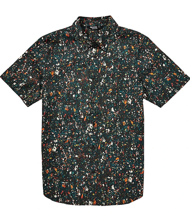 From Outdoor Research, this shirt features: Allover print Spread collar Short sleeves Button-front closure Pocket at left chest Back yoke box Shirttail hem Breathable fabric Anti-odor Cotton/polyester Machine wash/tumble dry Imported.