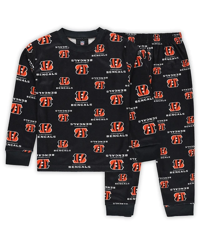 Outerstuff Preschool Black Cincinnati Bengals All-Over-Print Long Sleeve T-Shirt and Pants Sleep Set