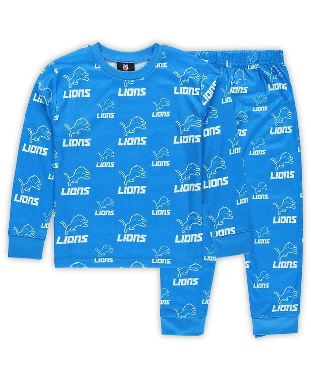 Outerstuff Preschool Blue Detroit Lions All-Over-Print Long Sleeve T-Shirt and Pants Sleep Set