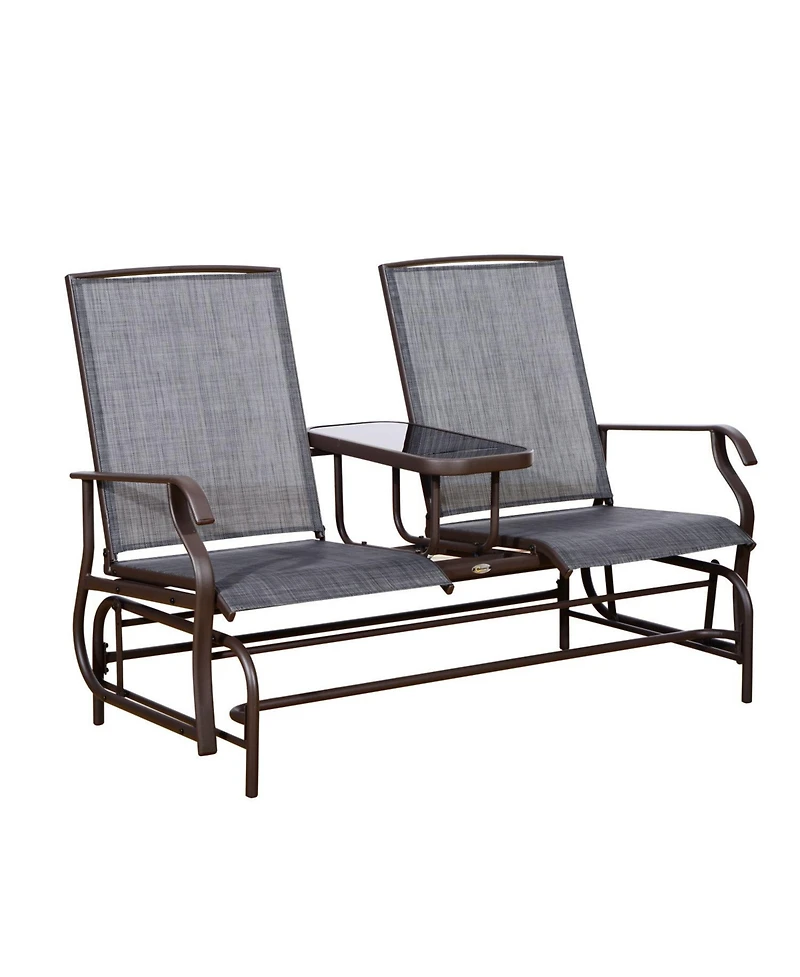 Outsunny 2-Person Outdoor Glider Bench w/ Center Table, Steel Frame for Backyard Garden Porch, Gray