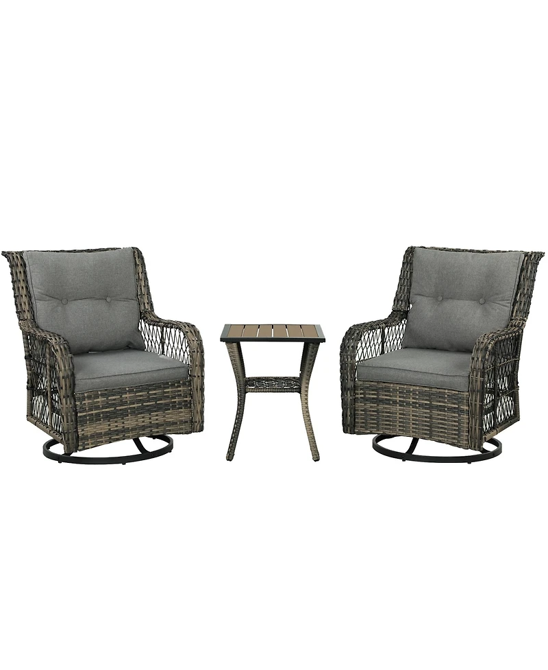 Outsunny 3 Pieces Wicker Bistro Set, Rocking Patio Furniture Set,