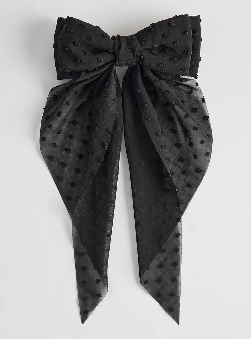 MATERIALS + CARE Man-made materials. Wipe clean with cloth. Imported. DETAILS Oversized bow design. Barrette base.