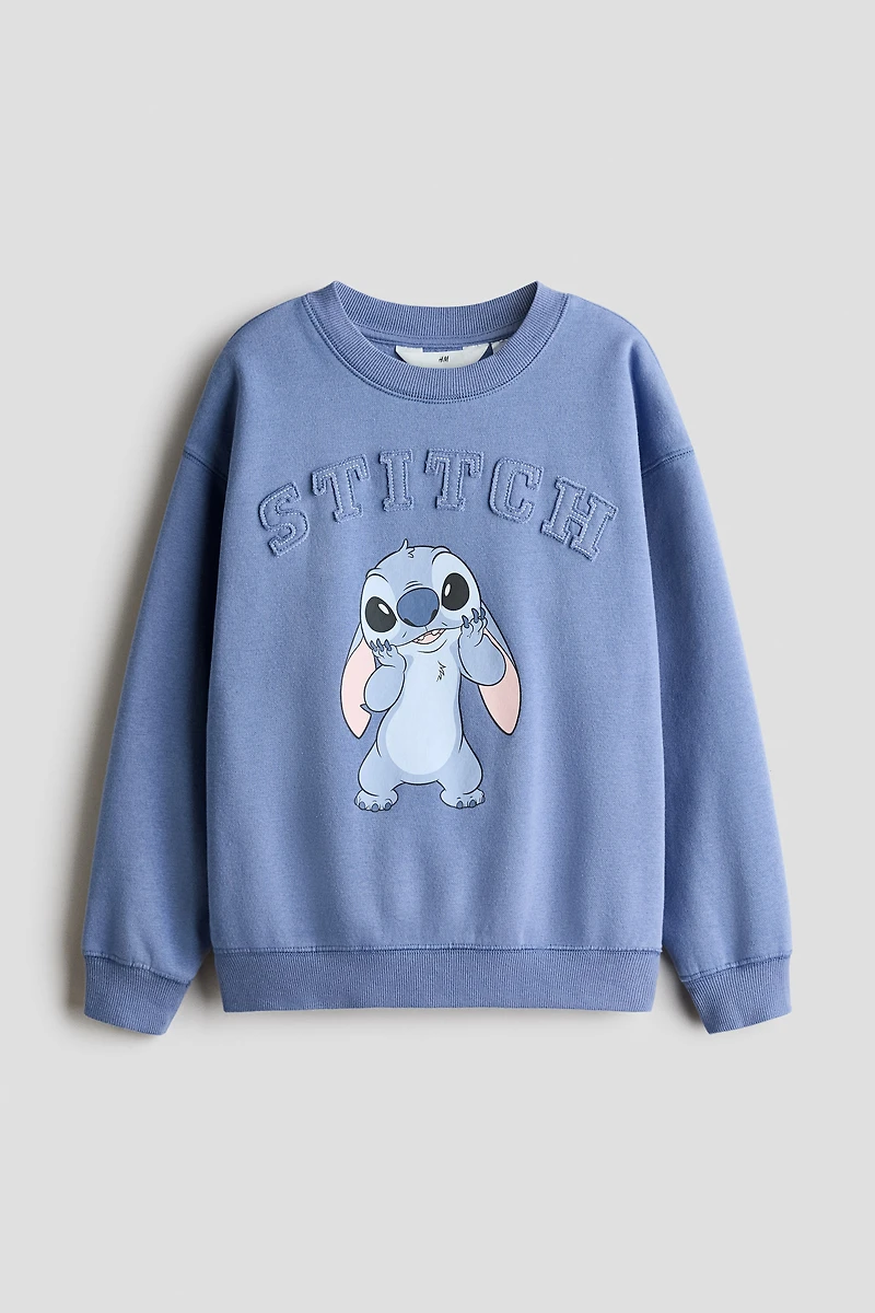 Oversized sweatshirt with a printed design and soft, brushed inside. Round neckline, dropped shoulders, and ribbing at neckline, cuffs, and hem.