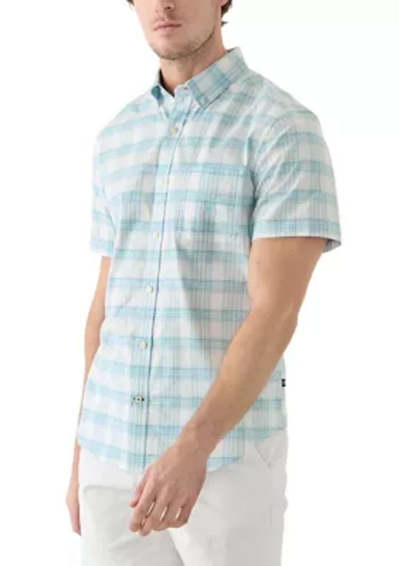 Style and comfort merge to form this Oxford plaid shirt from Nautica. Button closure Button-down collar Short sleeves Plaid pattern Imported Material & Care Cotton, elastane Machine washable